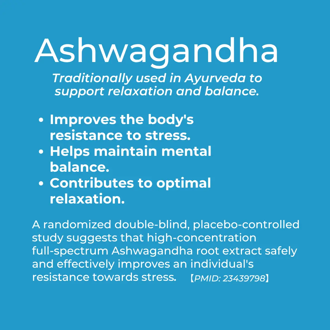 Ashwagandha is a traditional adaptogenic herb widely used in traditional wellness practices. Adaptogens help the body manage stress more effectively, supporting mental clarity and a sense of calm.
